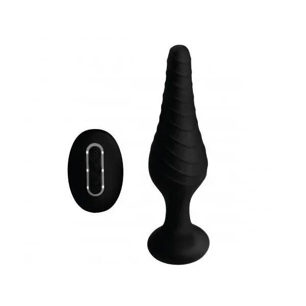 This textured, tapered plug will vibrate within your ass with just the push of a button! Let the pleasure take control with this easy-to-use, remote-controlled, rechargeable anal vibrator! Whether you appreciate the convenience during solo play, or the power during couples play, the wireless remote is an exciting feature for use at home or out on the town! Simple buttons allow you to move back and forth between 3 speeds and 7 patterns of vibration with a remote range of 15 feet. The narrow tip allows for a comfortable insertion while the spiraling ridge winds up the plug for an internal massage. Made of premium silicone, this pleasure tool is phthalate-free for body safety, and non-porous for thorough sanitization. Clean this waterproof device after use with warm water and mild soap or toy cleaner.
