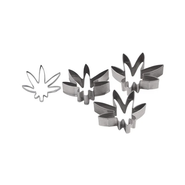Make some fun cookies with our Weed Cookie Cutters! Features a cookie cutter shaped like a weed leaf. Made of stainless steel. Measure 2 3/4 inches by 2 1/2 inches. Dishwasher safe. Contains three (3) per package.