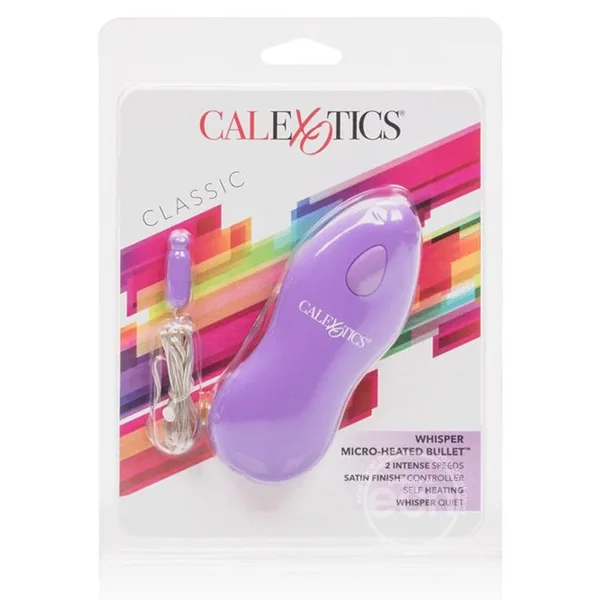 Whisper quiet, soft Rubber-Cote, 2-speed micro-bullet heats up with powerful vibrations. Ergonomic battery pack with EZ push button control. 2 AA batteries.