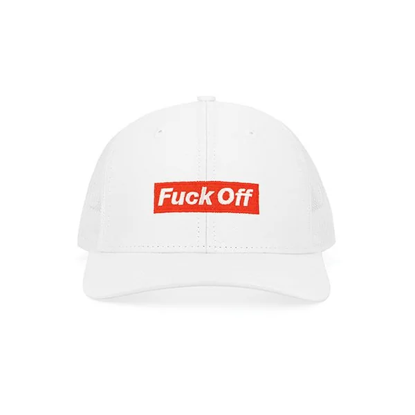 This “Fuck Off” Trucker Hat is made of cotton with a high-quality embroidered graphic, and features an adjustable snapback design so one size fits most.