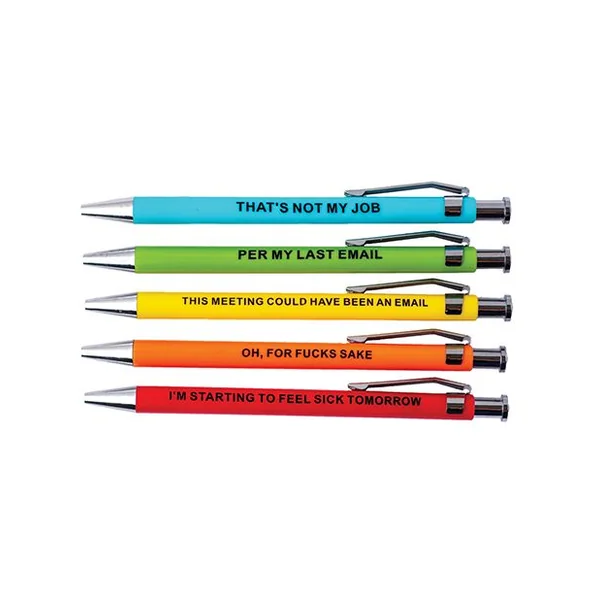 Step up your writing game with our offensive yet hilarious ballpoint pens. Each pen in our collection is designed to bring a smile to your face, whether you’re jotting down notes, signing documents, or doodling in your free time. Our pens feature unique and funny sayings that are perfect for adding a bit of humor to your day. Made from high-quality materials, these pens are not only fun but also reliable and durable.